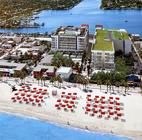 Costa Hollywood by developer Moses Bensusan is a pair of six story buildings located near Hollywood Beach that are only steps away from the waterfront. The Hollywood condos for sale within the building have one or two bedrooms and many of them are fully furnished and thus ready for move-in. The building also offers a number of hotel services.
